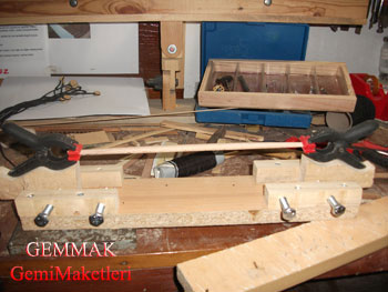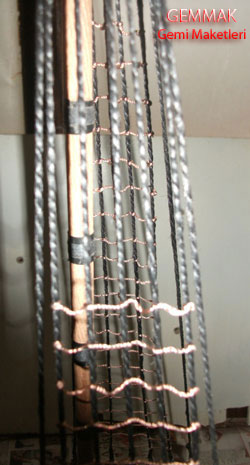 altlı-üstlü 3x9 mm. tiriz çıta çekilecek.Geminin güverte